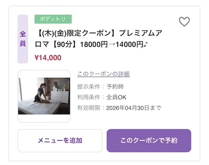 マットプレミアムアロマ90分→14000円